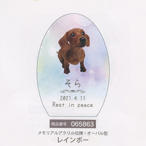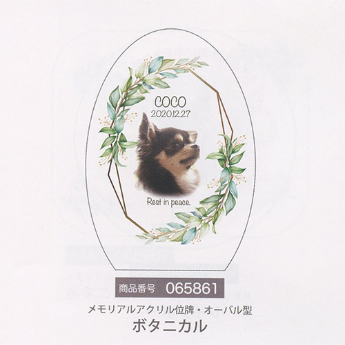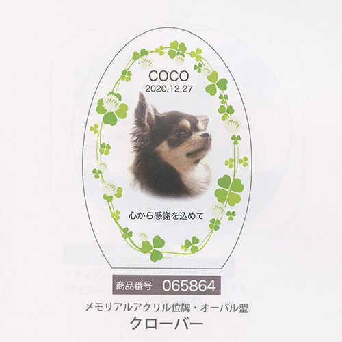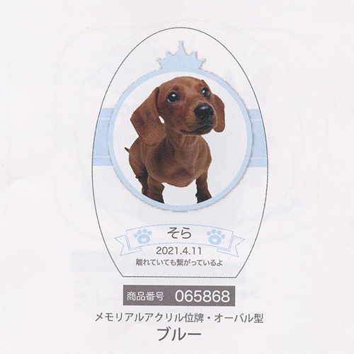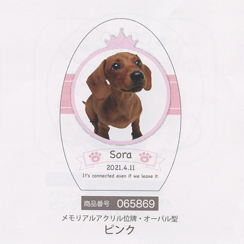 オーバル型の可愛らしい位牌です。お写真・お名前・日付・メッセージを入れることが出来ます。 W6cm×H9.1cm(位牌面:W4.9cm×H7cm) アクリル位牌オーバル型/クラシカル 6.600円(消費税込)